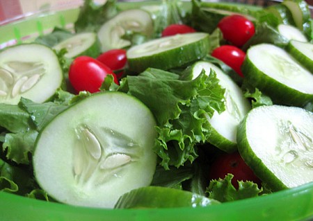 Lettuce or spring mix, tomatoes, cucumbers, Your choice of salad dressing. .